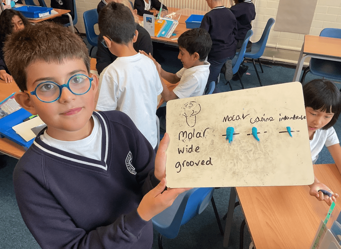 This week, Year 4 continued their science unit about animals including humans: teeth and digestion, by looking at the different types of teeth!  They used mirrors to look at their own teeth and identify the different types: incisors, canines, premolars and molars.