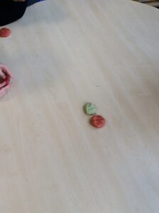 We have been colour mixing  using playdough. We mixed our primary colours red, yellow and blue. We focused on keywords mixing and blending to help us understand the process of change in colour.  We mixed primary colours to make secondary colours.