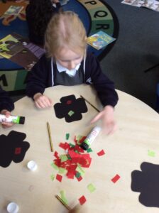 Year One have looked at symbols and the importance of wearing a poppy. Using Rally Robin we came up with words to help us explain to others what a poppy symbolises: brave, kindness, strength, loyalty and love. We have been using our fine motor skills to make poppies to help us to remember soldiers that have fallen.  Year One are extremely grateful to those fallen soldiers. Least we forget.