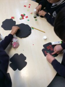 Year One have looked at symbols and the importance of wearing a poppy. Using Rally Robin we came up with words to help us explain to others what a poppy symbolises: brave, kindness, strength, loyalty and love. We have been using our fine motor skills to make poppies to help us to remember soldiers that have fallen.  Year One are extremely grateful to those fallen soldiers. Least we forget.